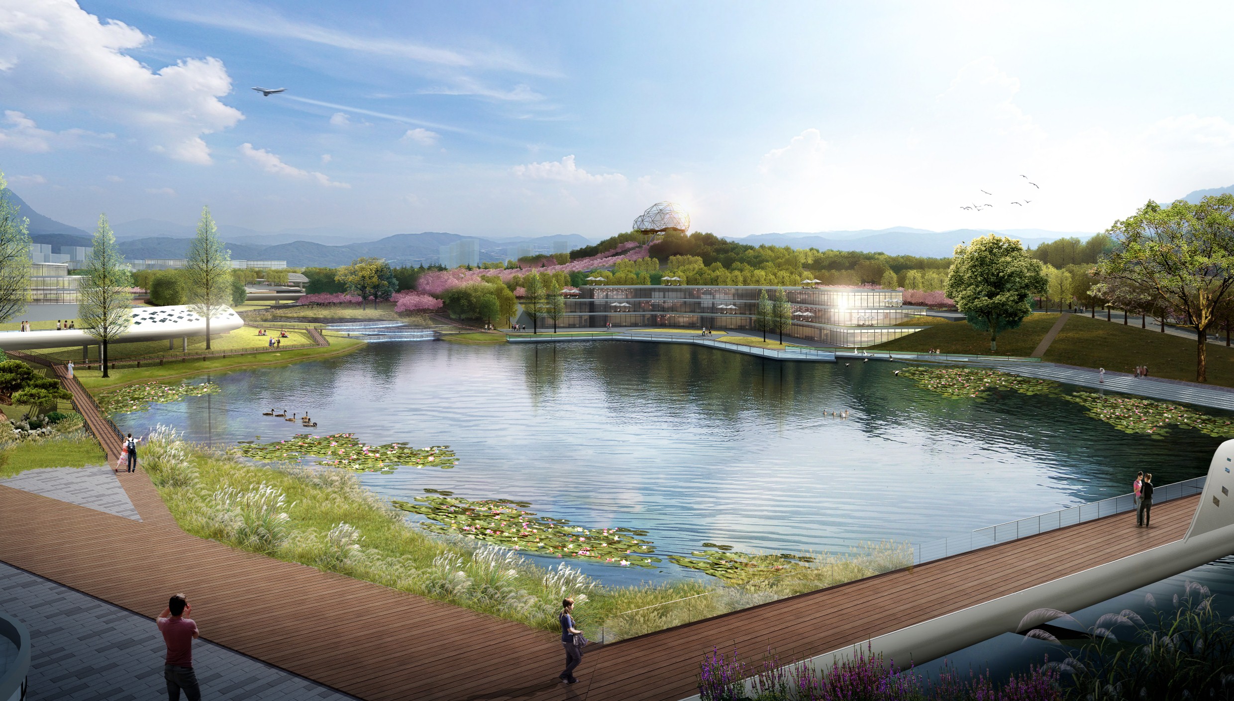 湖北省2020年省级重点建设项目「红莲湖大数据云计算产业园」位于红莲湖新区北部,毗邻武汉光谷。项目总建设用地约619万m²,中央绿廊等绿地面积共计48万m²,由DDON笛东与荷兰高柏伙伴规划景观建筑顾问公司 (Kuiper Compagnons) 共同担纲景观咨询设计。